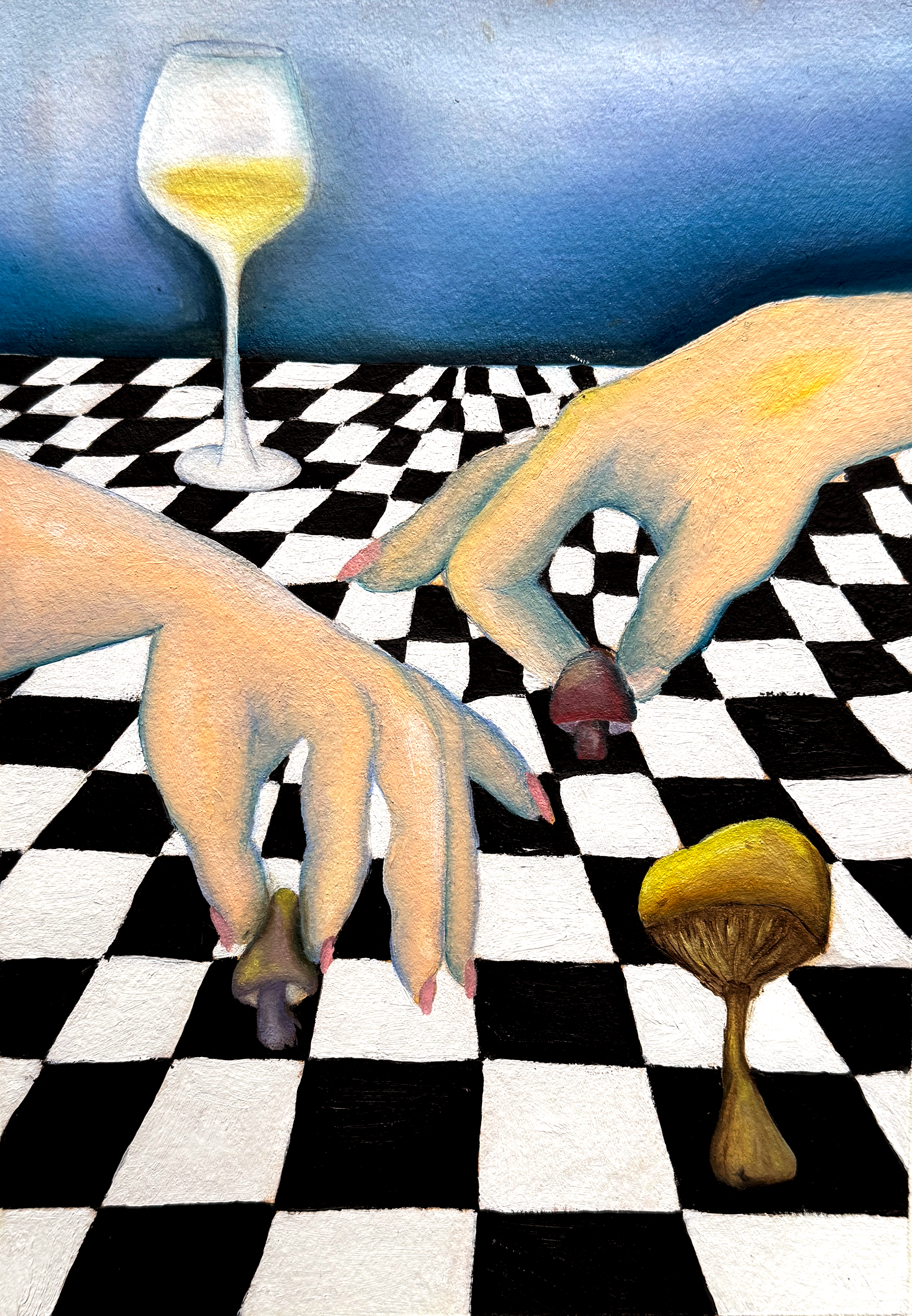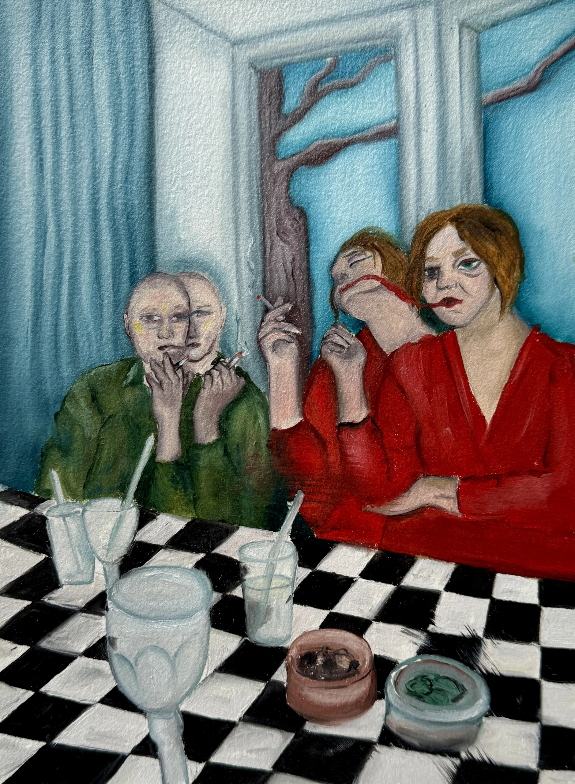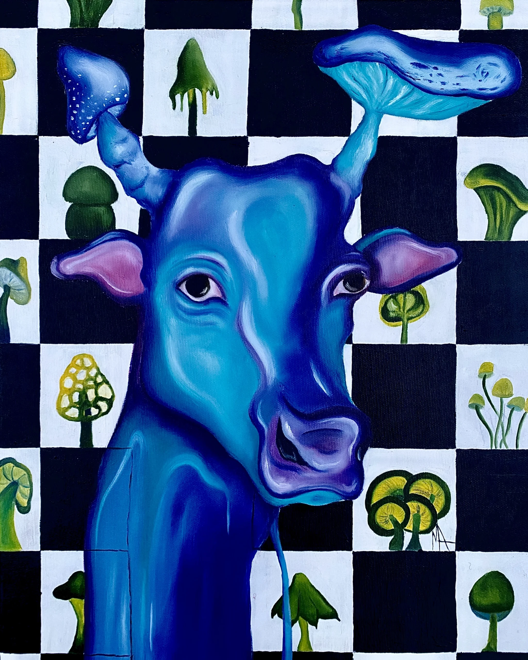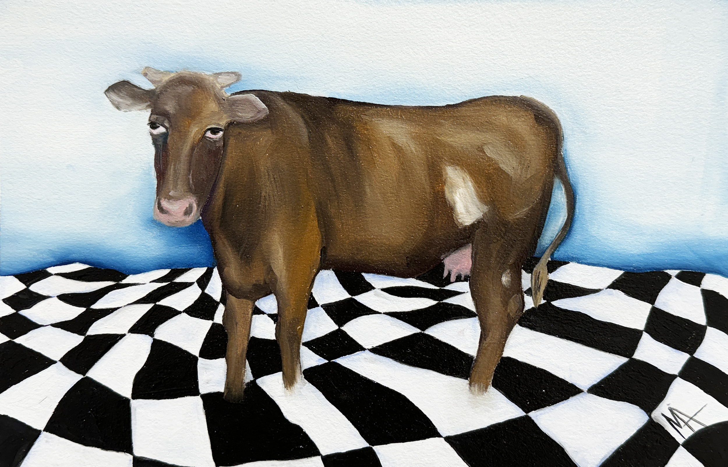 "Cowchekers" oli on canvas, 40x50 cm, 2023, SOLD