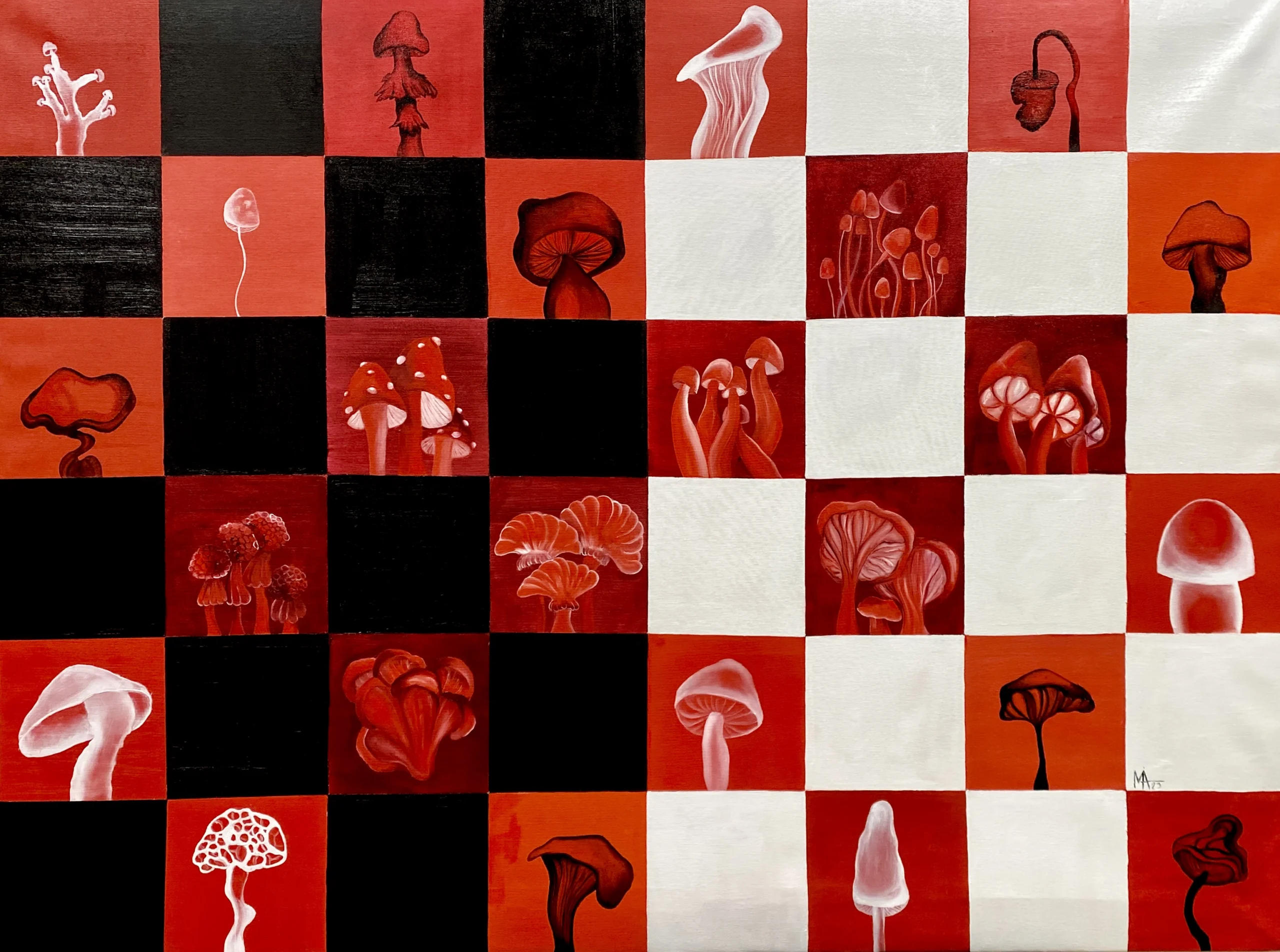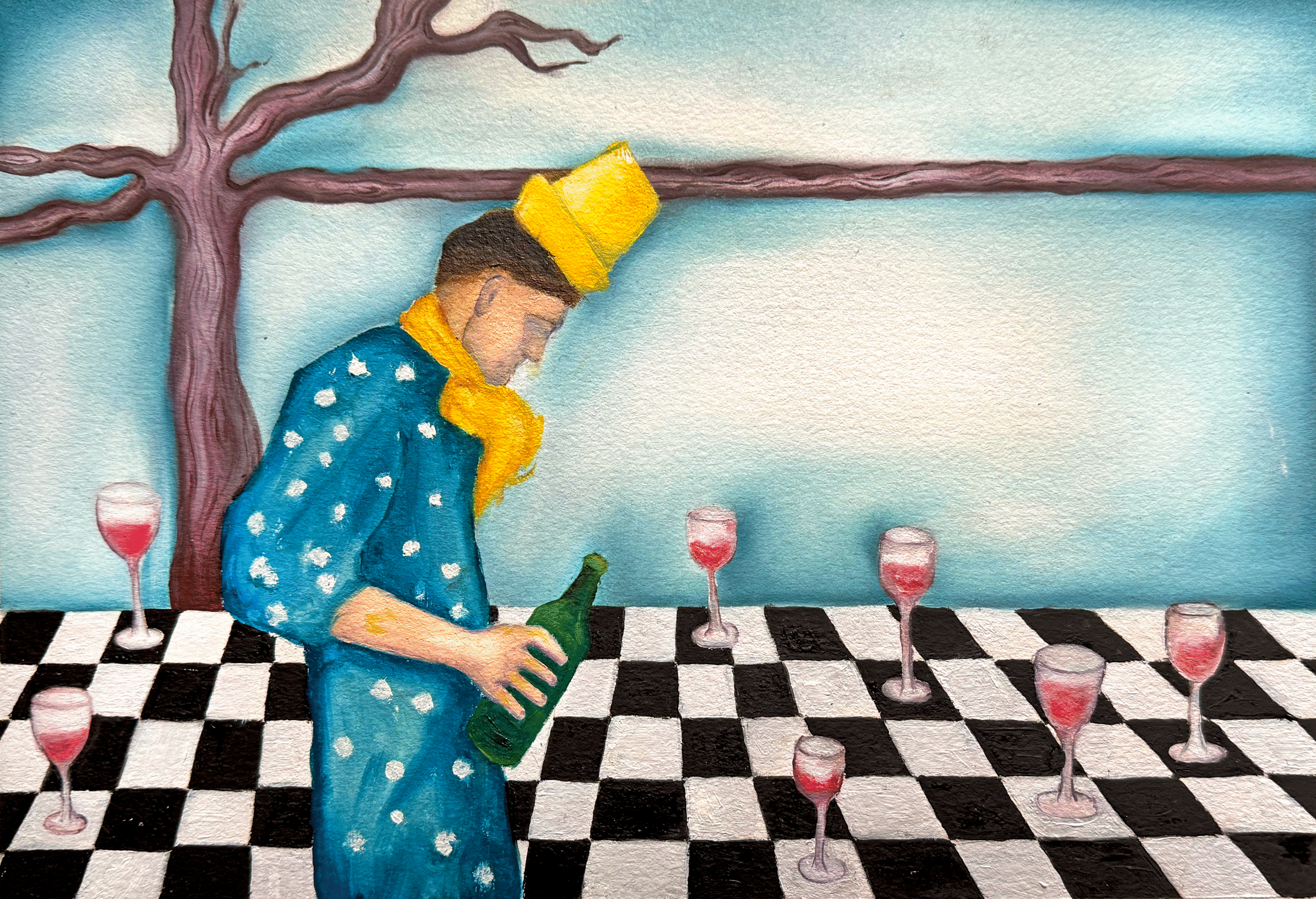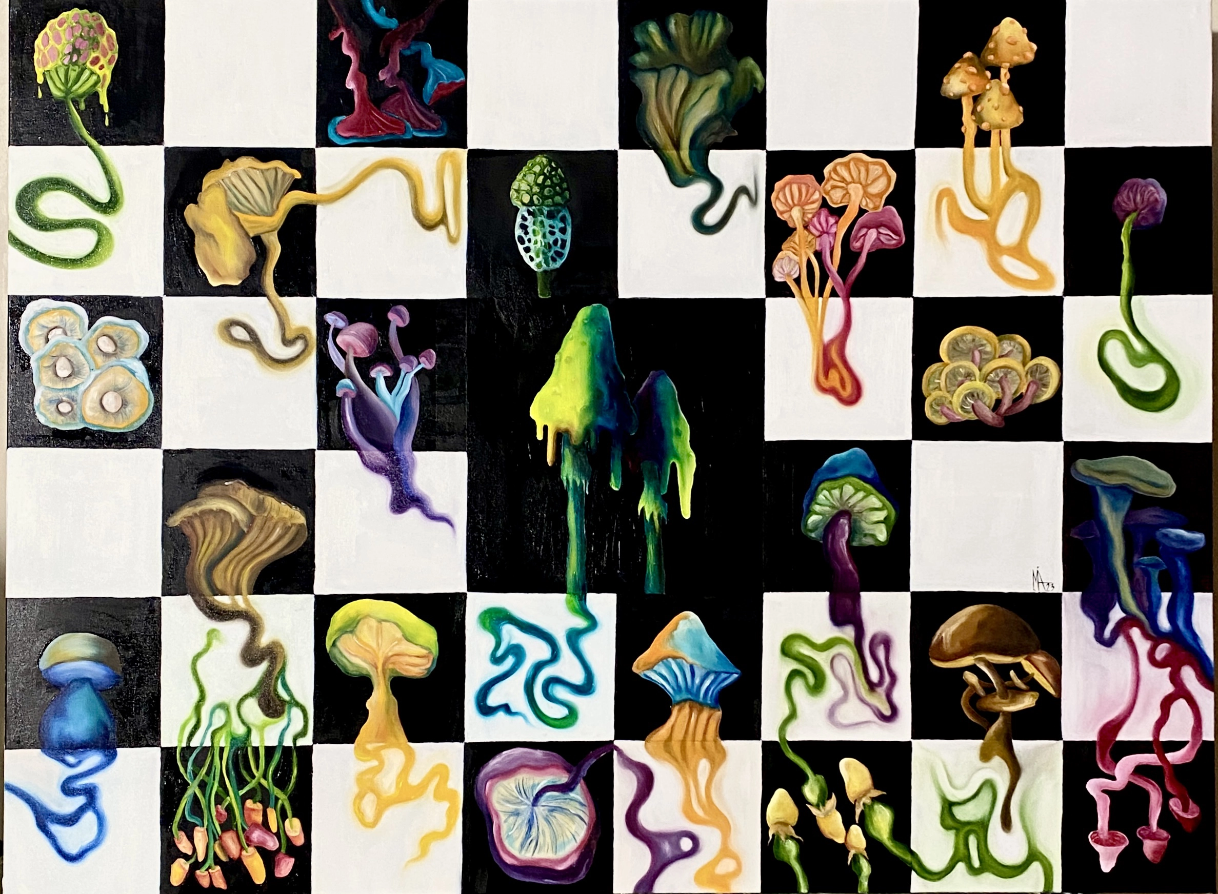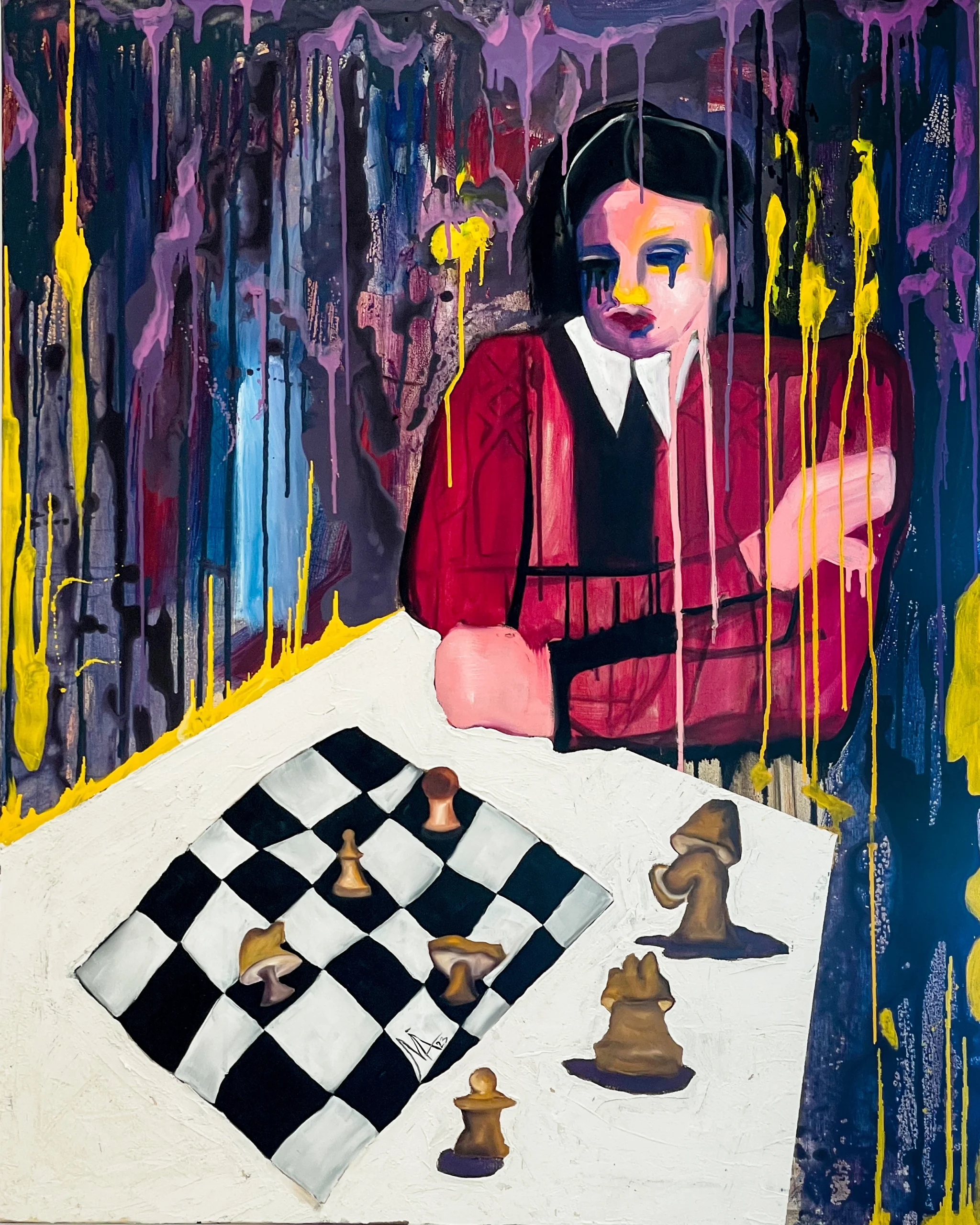 "Cowchekers" oli on canvas, 40x50 cm, 2023, SOLD