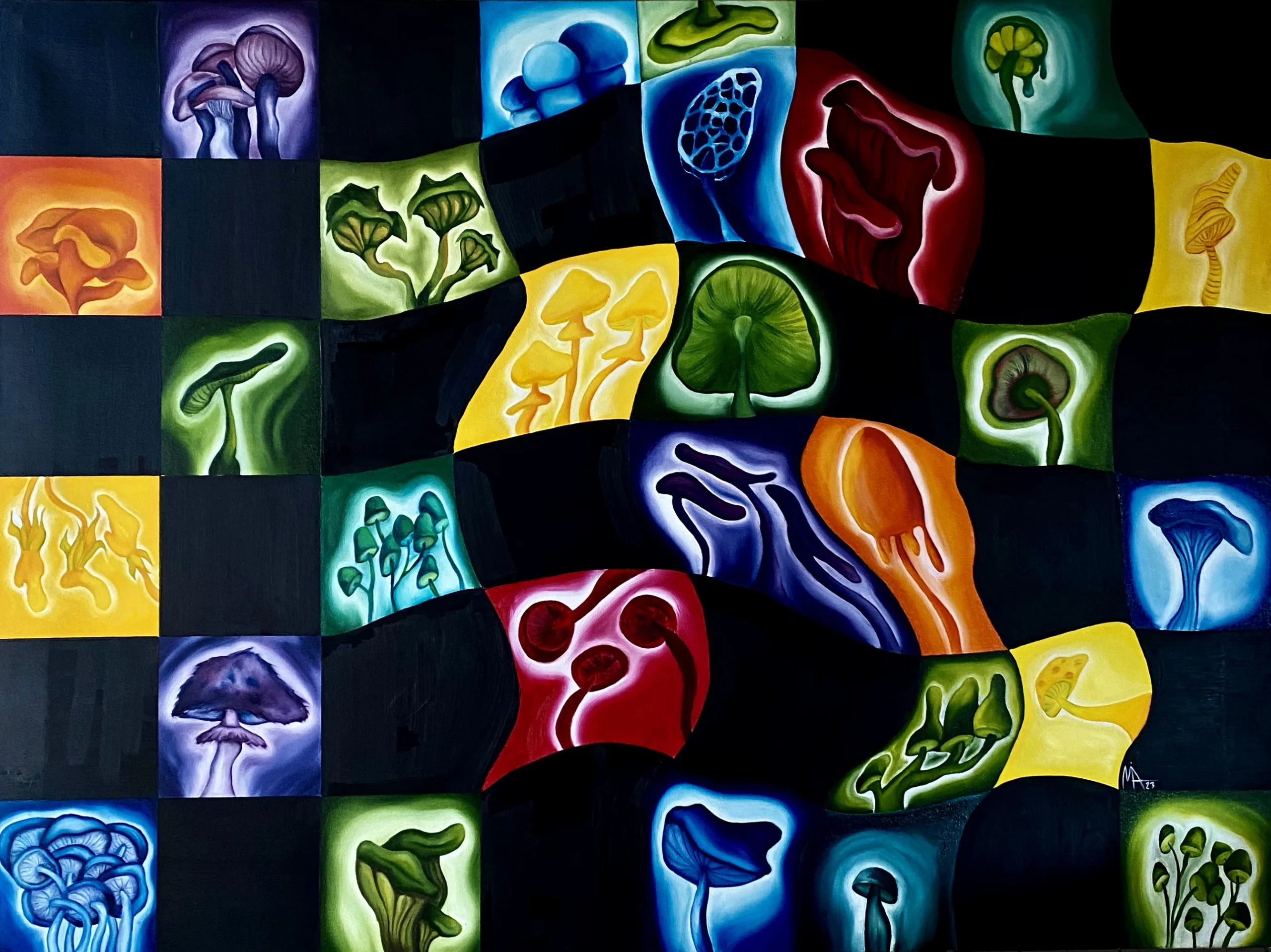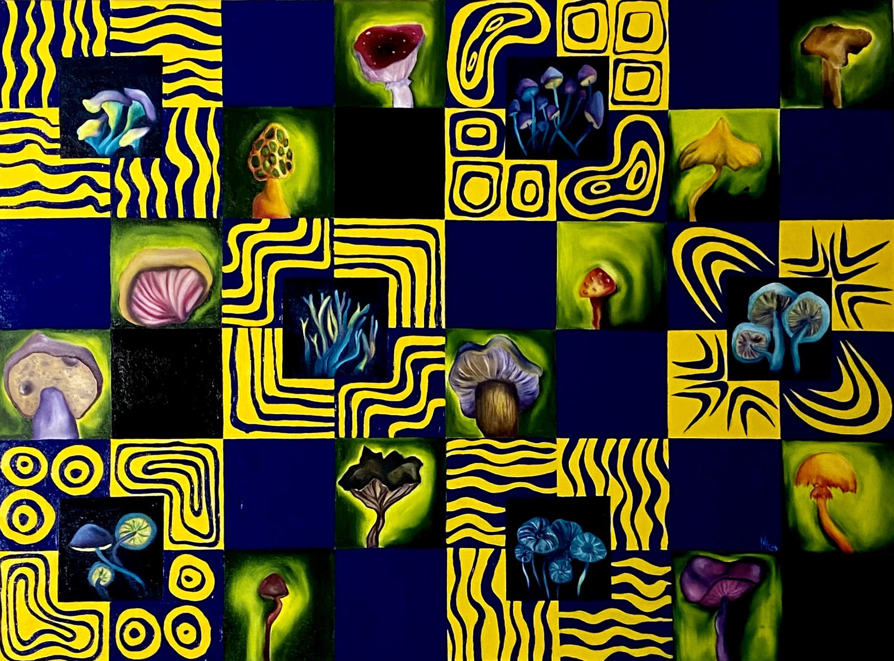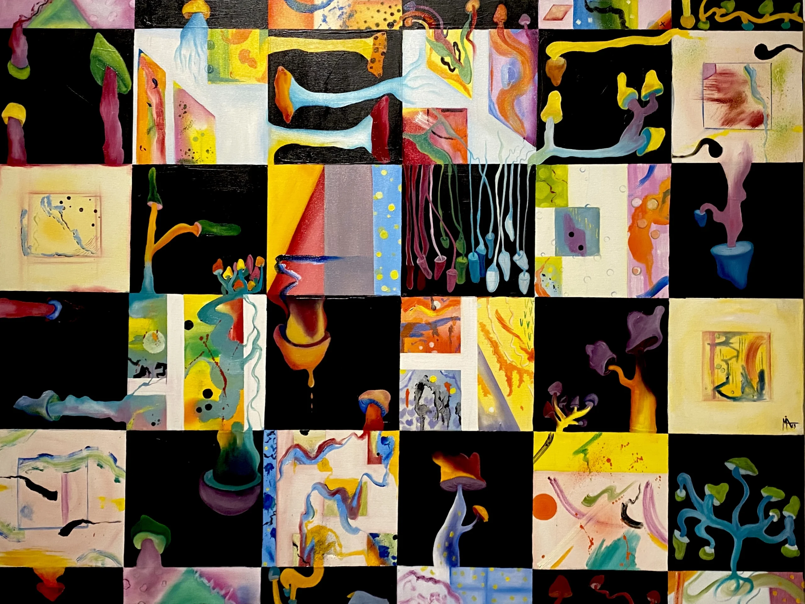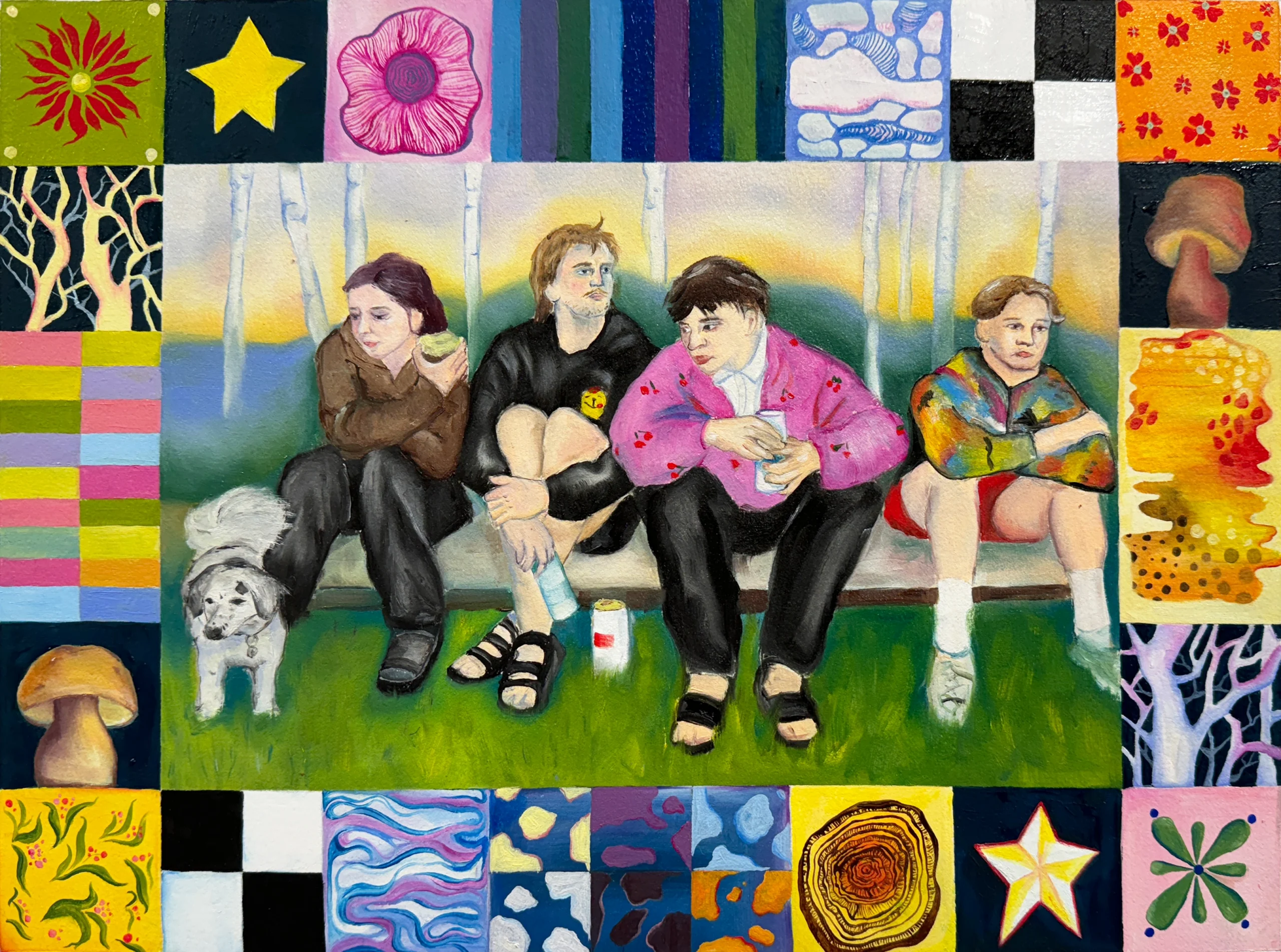 "Cowchekers" oli on canvas, 40x50 cm, 2023, SOLD