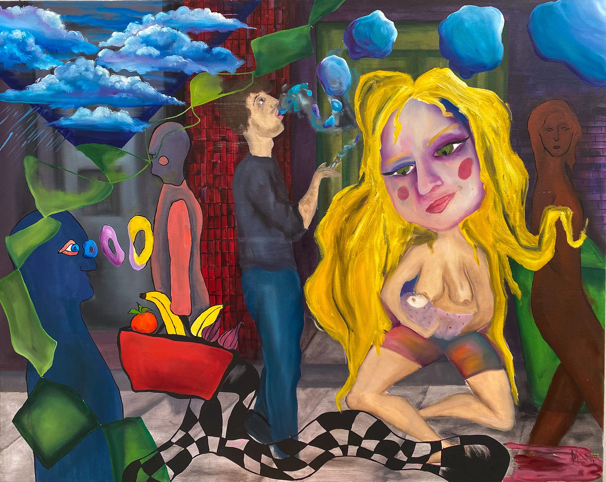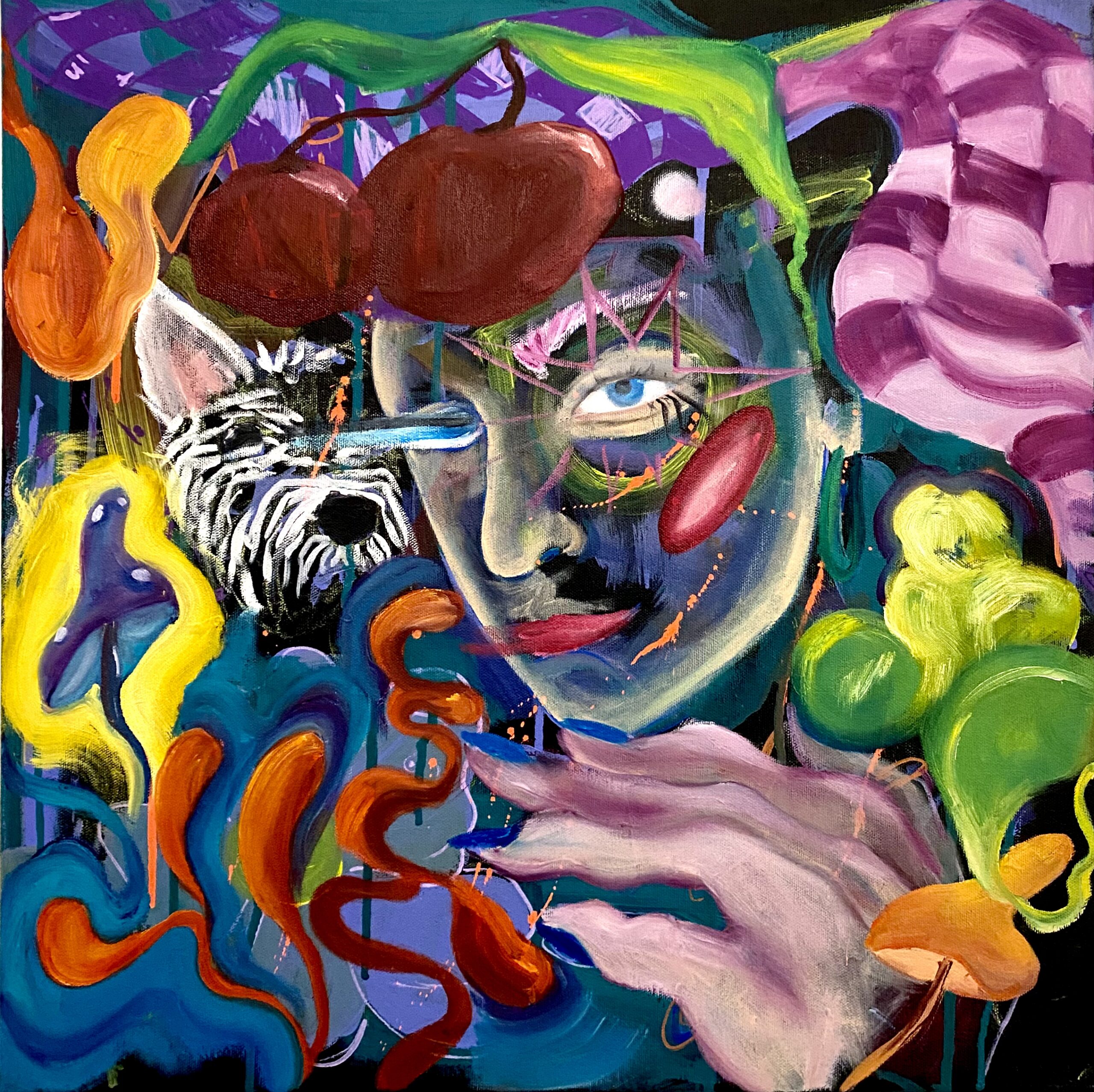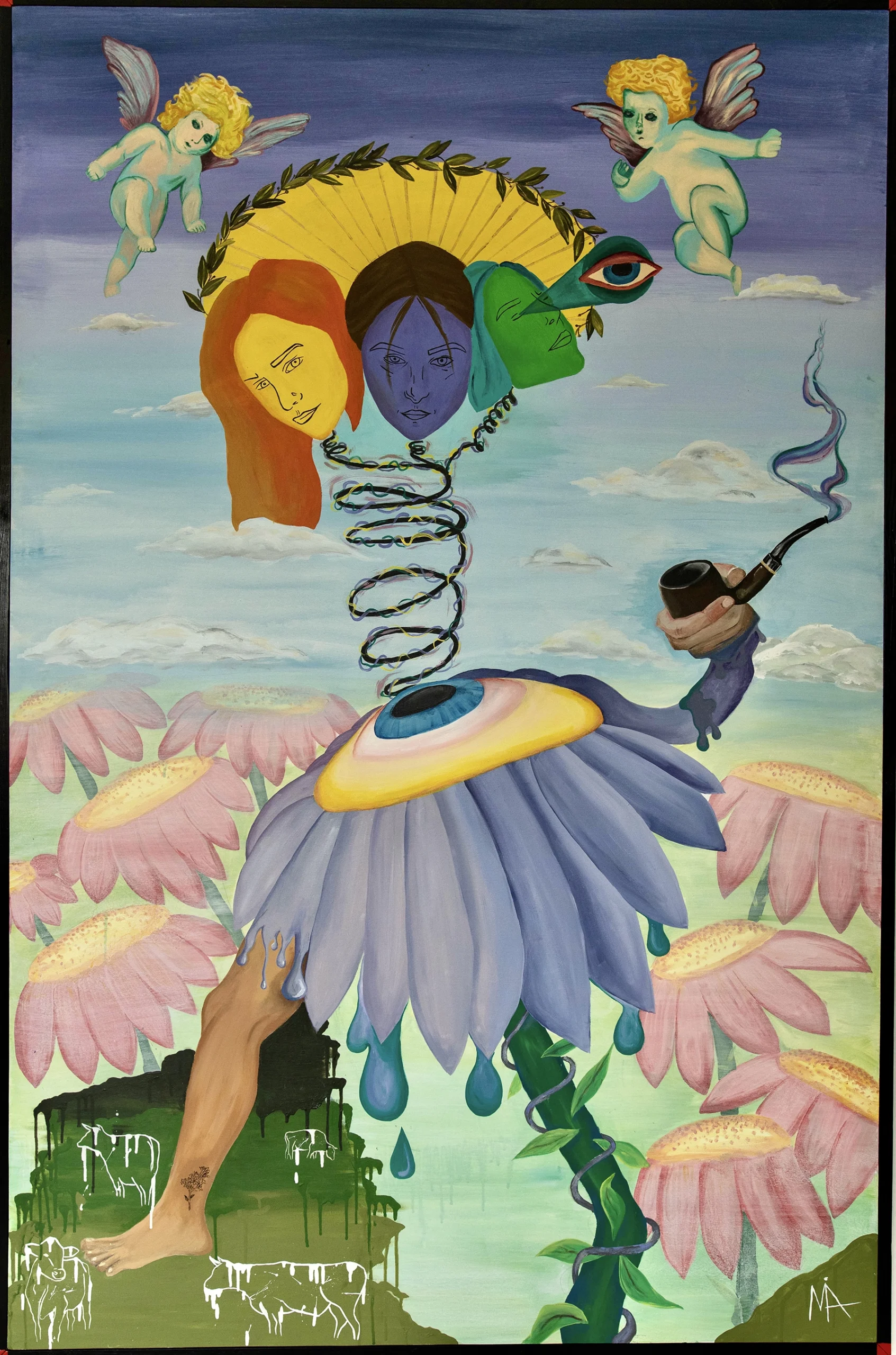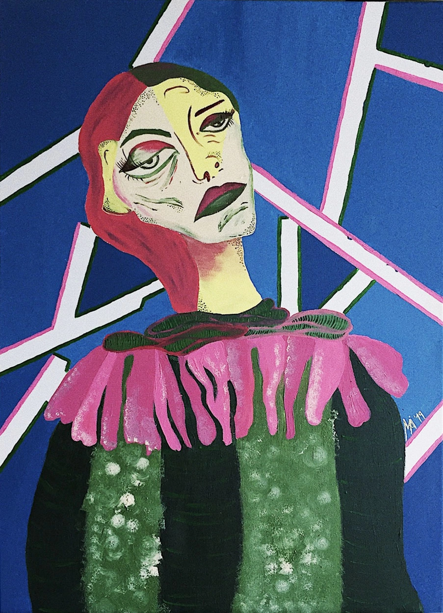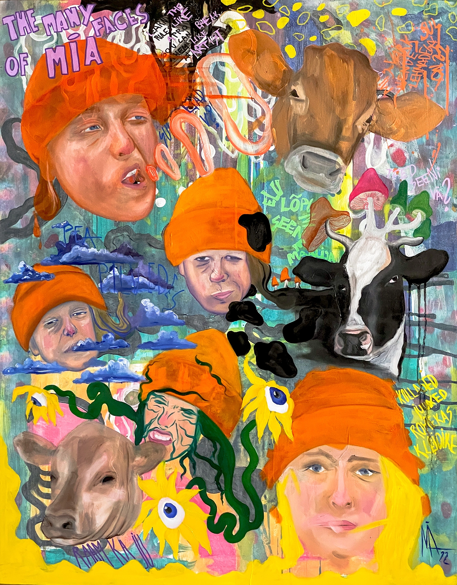 “The many faces of Mia vol 2”, acrylic and oil on canvas, 80,5x103 cm, 2022