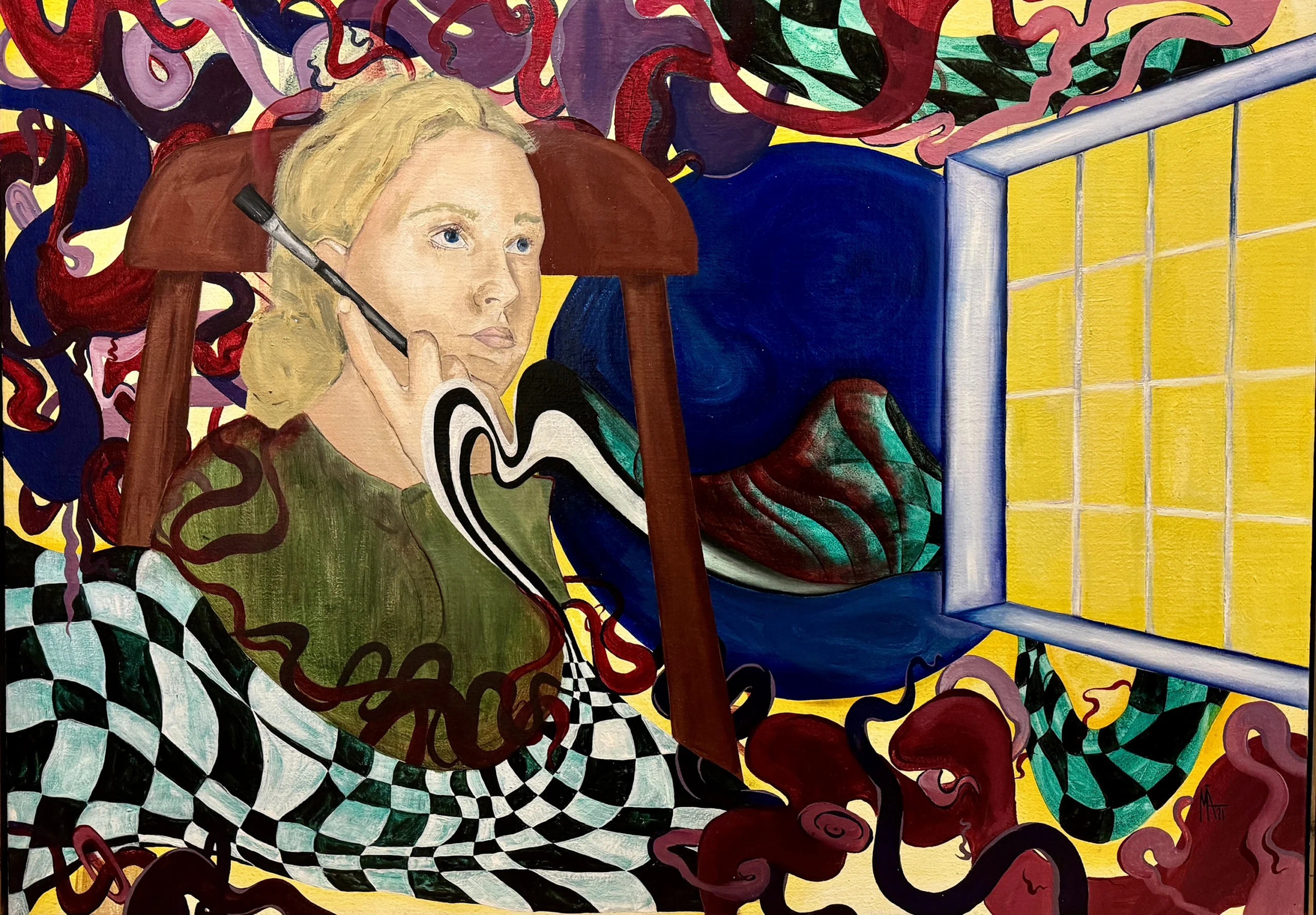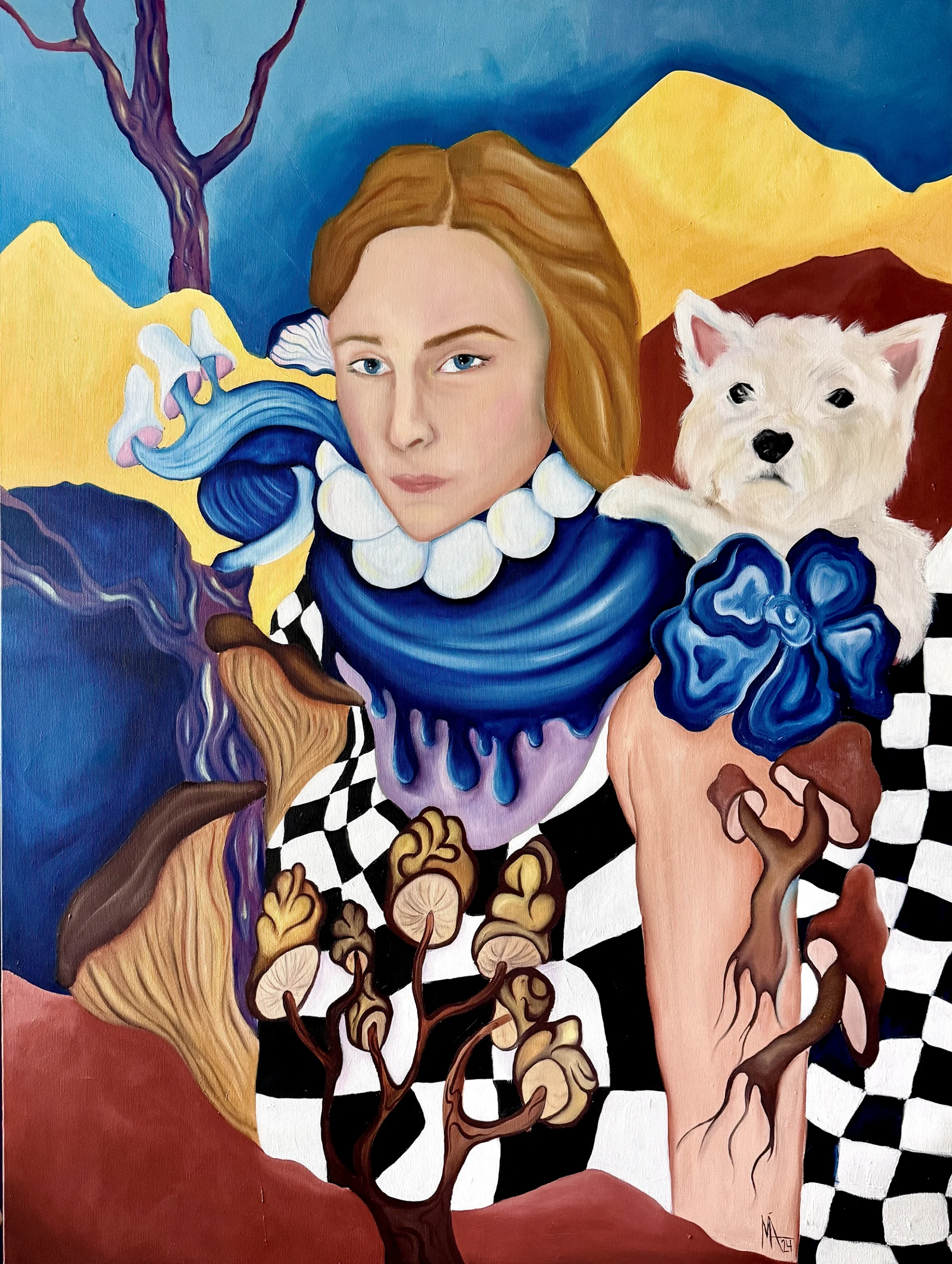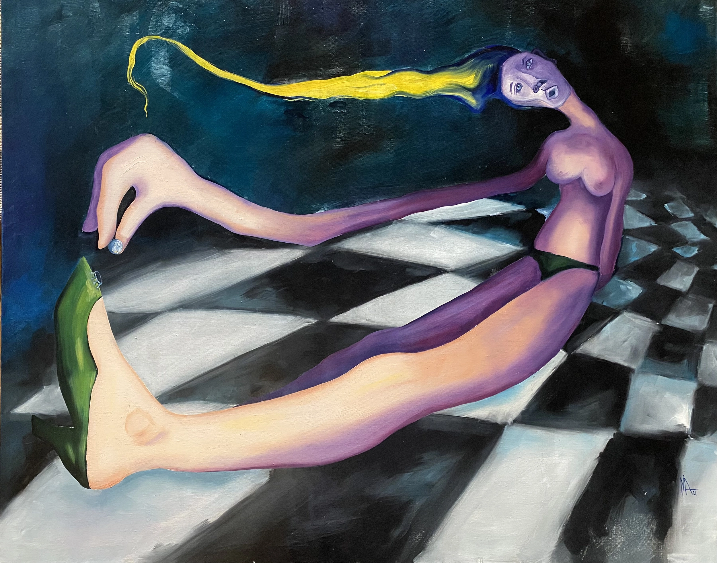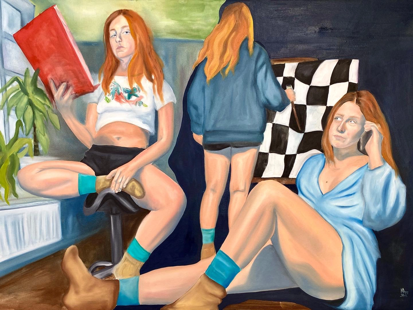 “The many faces of Mia vol 2”, acrylic and oil on canvas, 80,5x103 cm, 2022