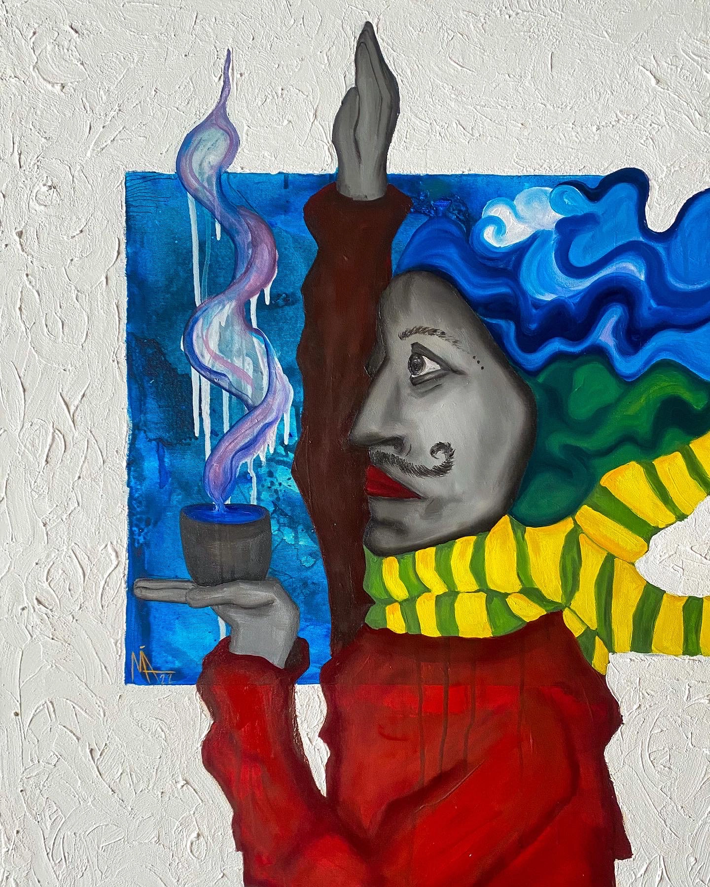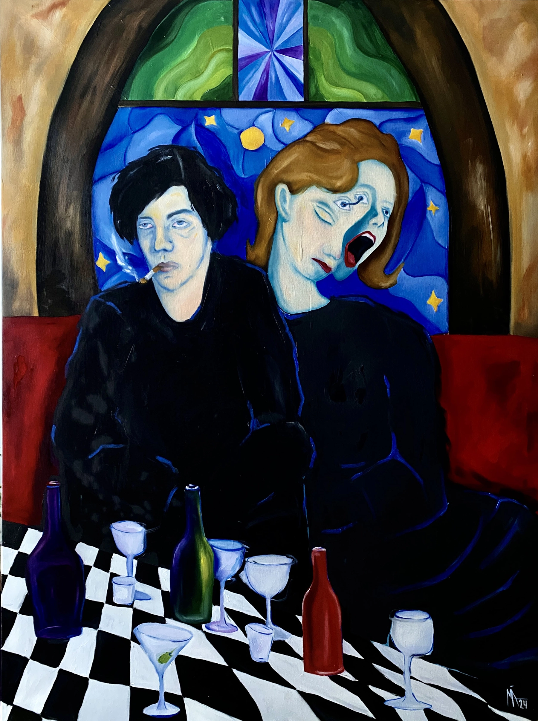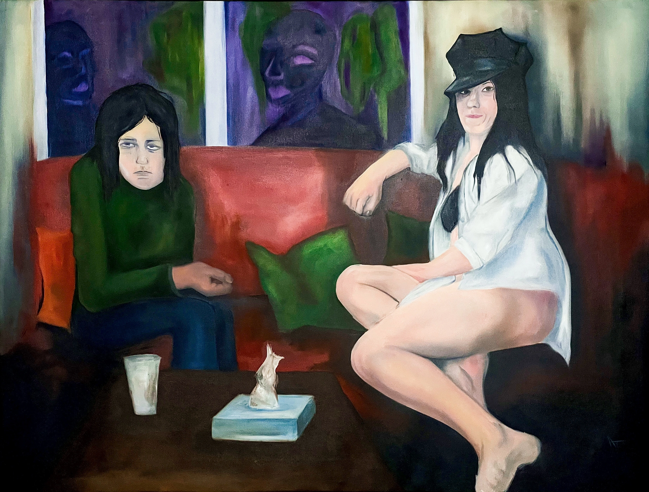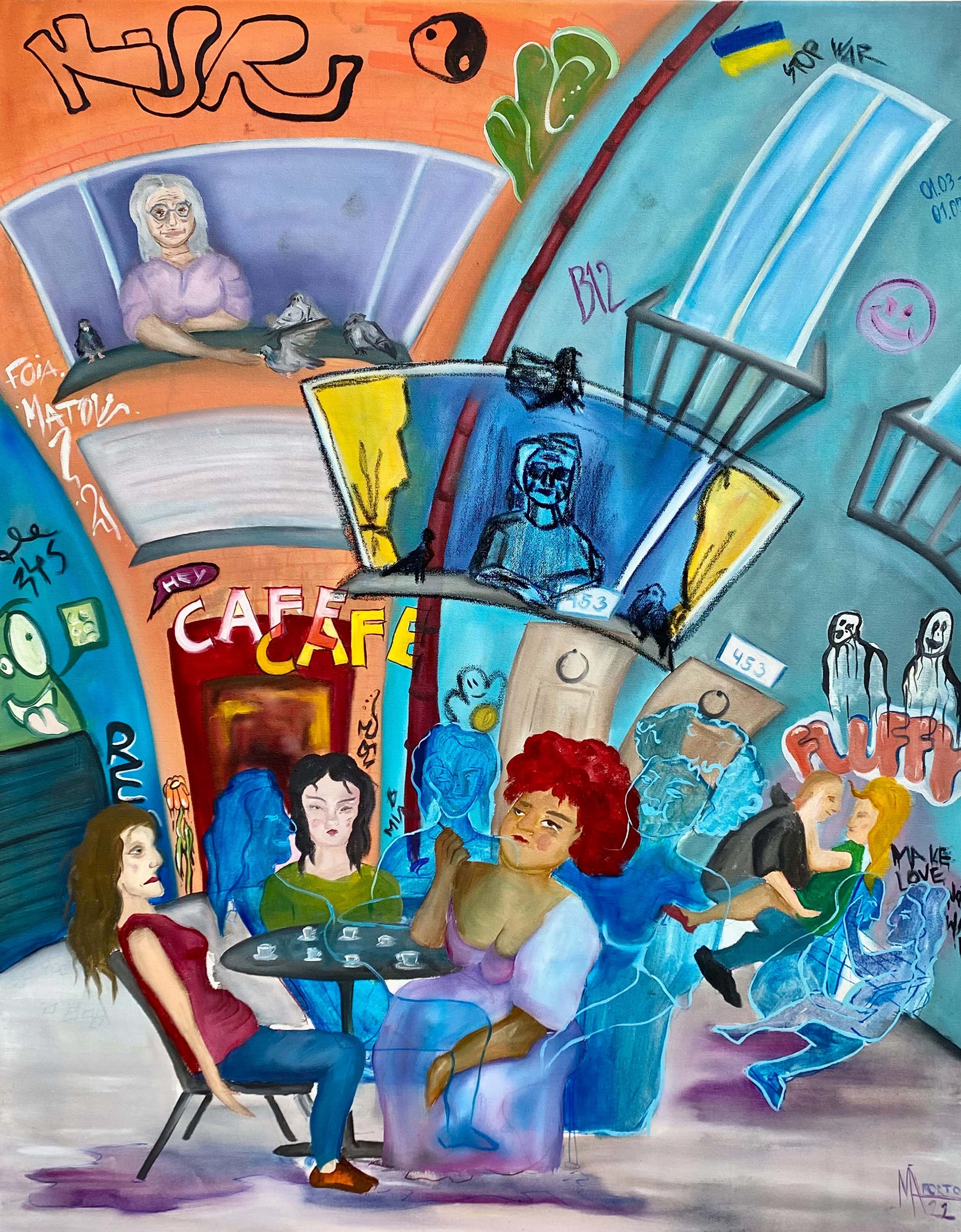 "Tuvinaine ja kohvikumutid", acrylic and oil on canvas, 72,5x91 cm, 2022, SOLD