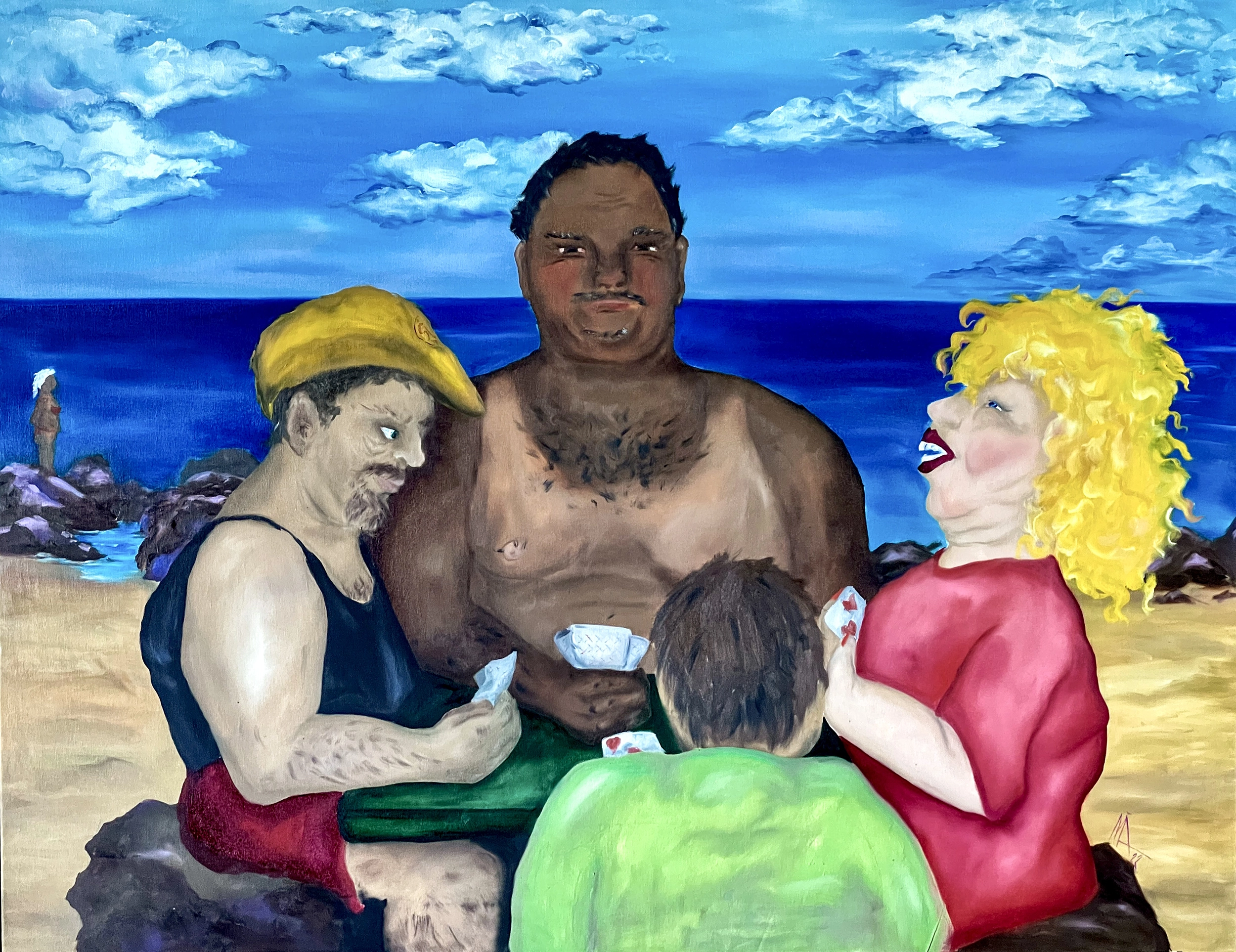 "Kaardimängijad rannas", oil on canvas, 131x102 cm, 2022, SOLD