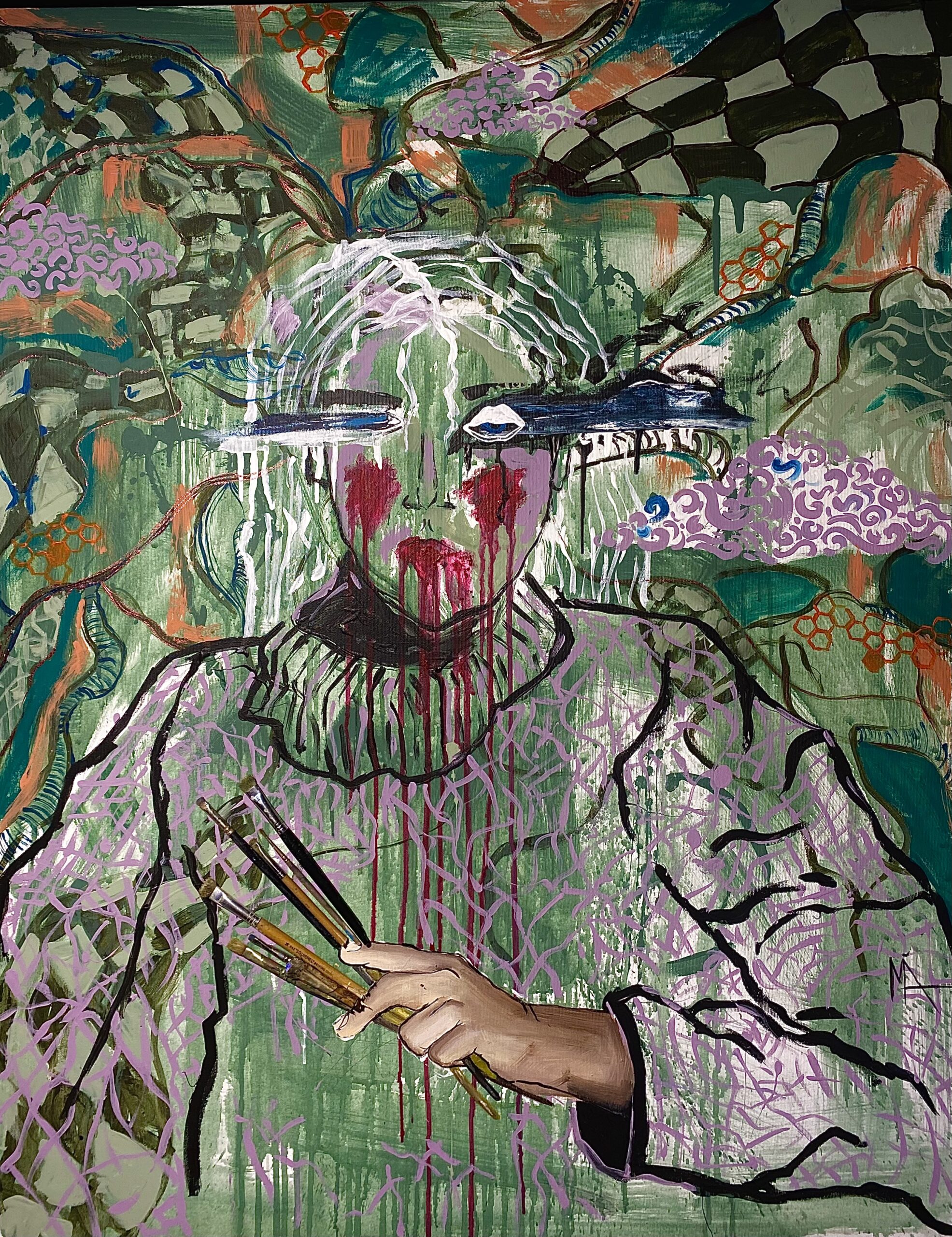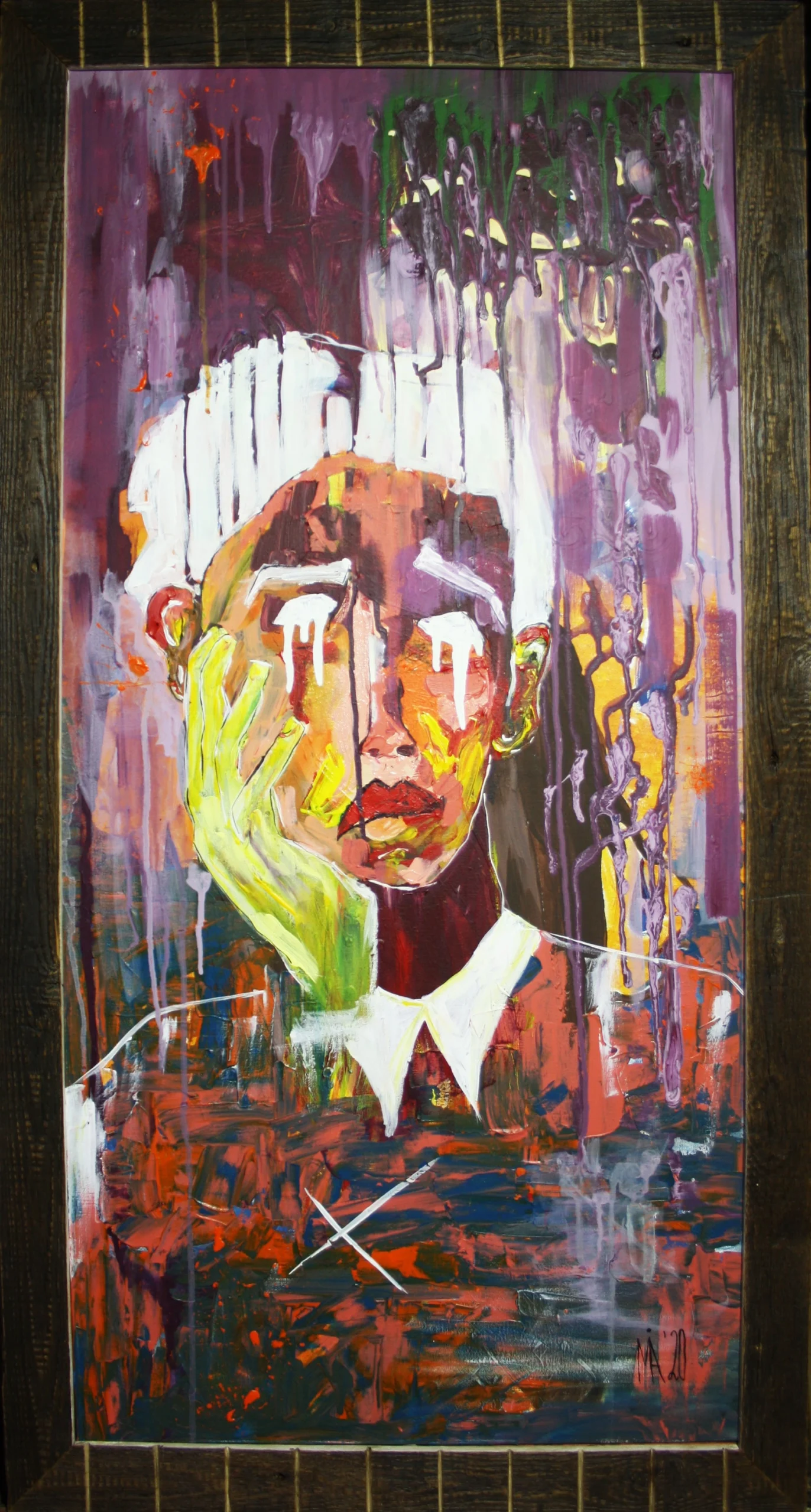"TheManyFacesOfMIA" acrylic on canvas, 200x120cm, 2020, SOLD