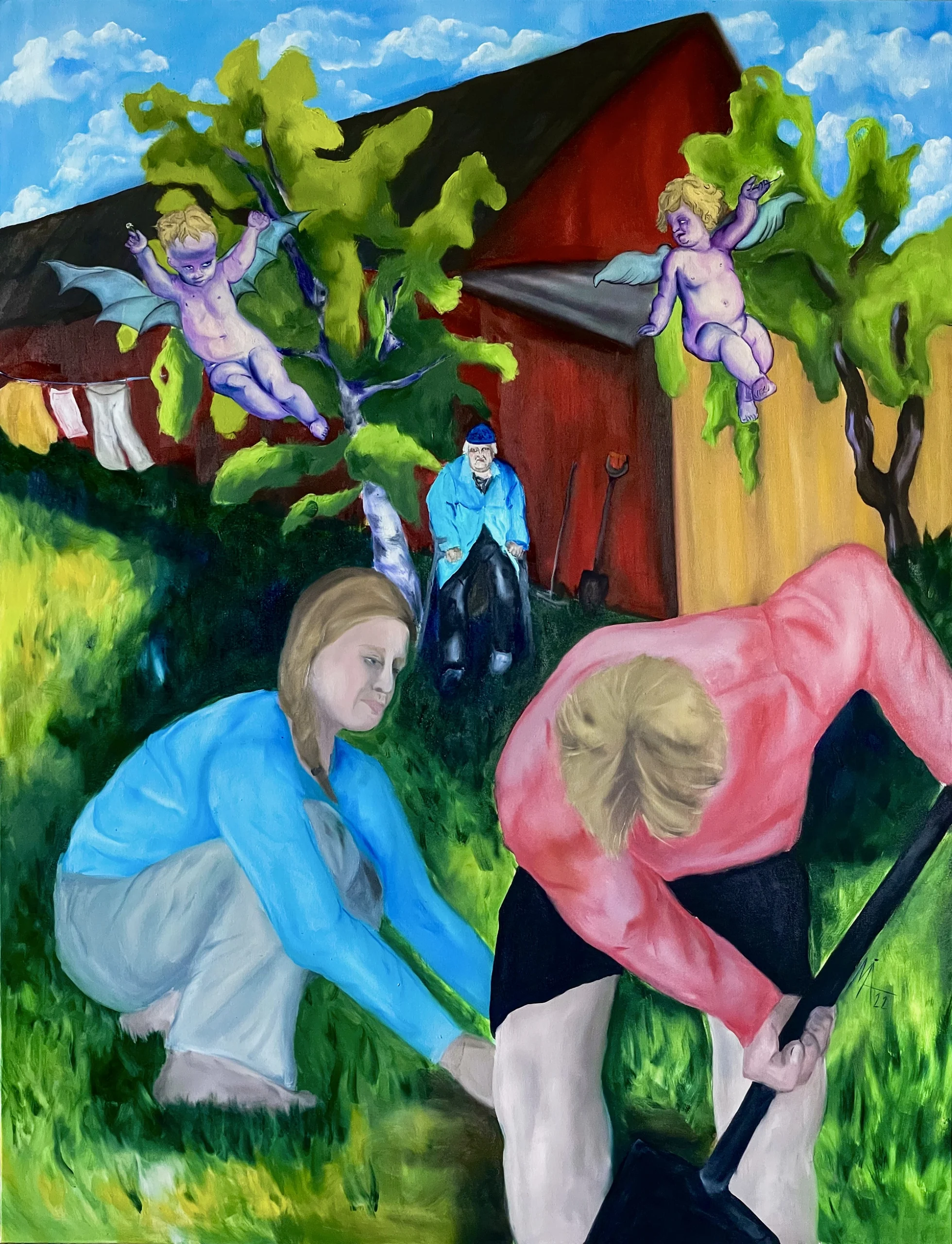 "Leida ja Nupu", oil on canvas, 120x90 cm, 2024
