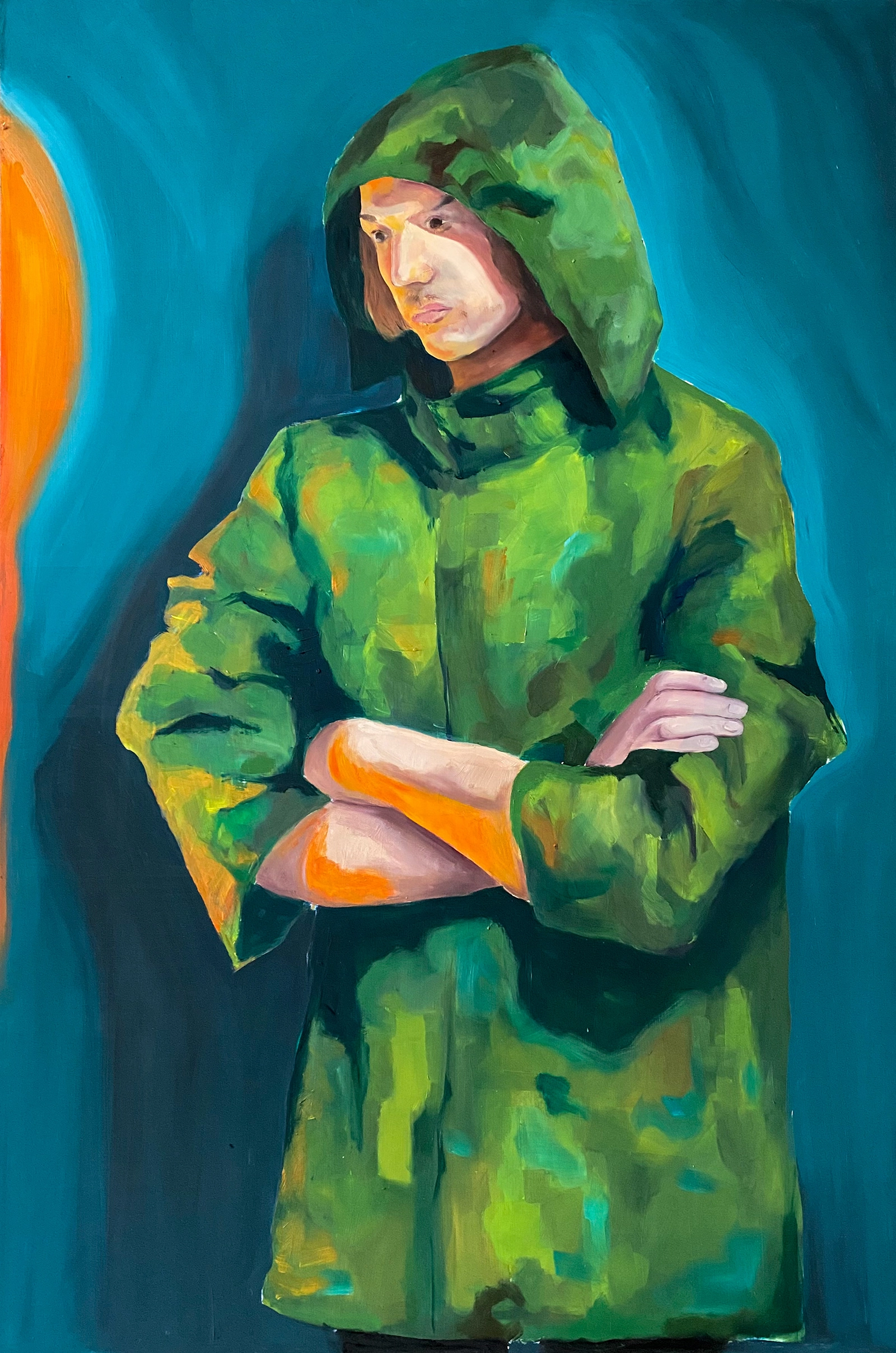 "Kunstnik lilla kampsuniga", acrylic on canvas, 81x103 cm, 2021, SOLD